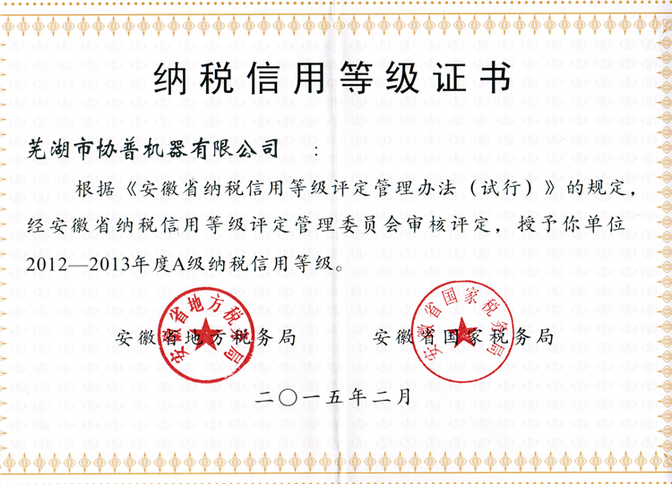 納稅等級(jí)證書(shū)