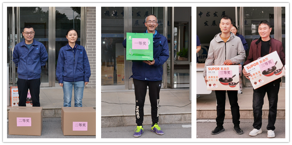 跟隨《團結(jié)友誼進(jìn)行曲》的節(jié)拍,主持人宣布本屆運動會頒獎儀式正式開始,首先公布各單項一、二、三名名單并頒發(fā)獎品,緊接著公布團體賽的優(yōu)勝方-管理團隊代表隊上臺領(lǐng)獎,于此同時,給予車間代表隊頒發(fā)優(yōu)秀參賽獎;其次根據(jù)全員參賽的積極情況對沒有得到名次的隊員給予參賽安慰獎;最終結(jié)合個人單項參賽總積分(名次和參賽項目累積)公布個人項目一、二、三等獎的得主并頒發(fā)獎品。